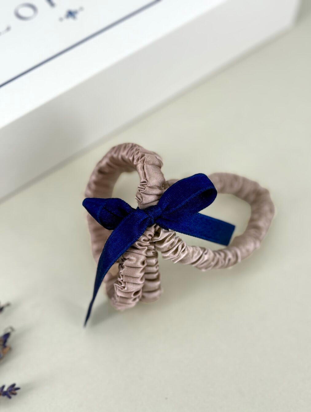– set vsebuje 3 male elastike v mocha rjavi barvi iz 100% Mulberry svile