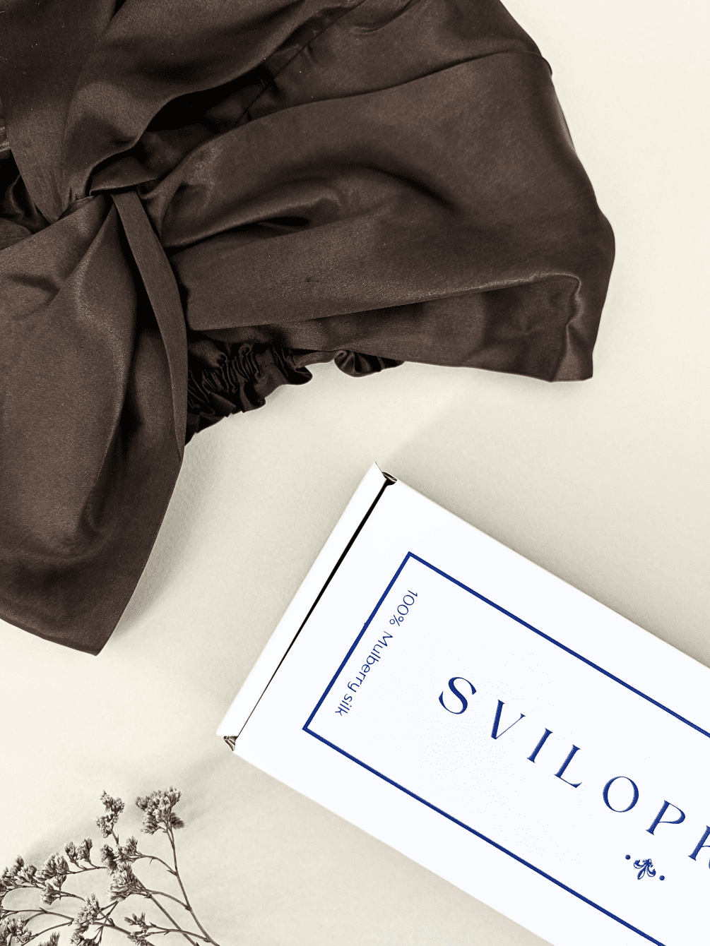 Vsebina: 1 svileni turban (svilena kapa za spanje) v espresso rjavi barvi